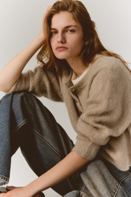 Cloud-Yarn Textured Funnel Neck Relaxed Jumper