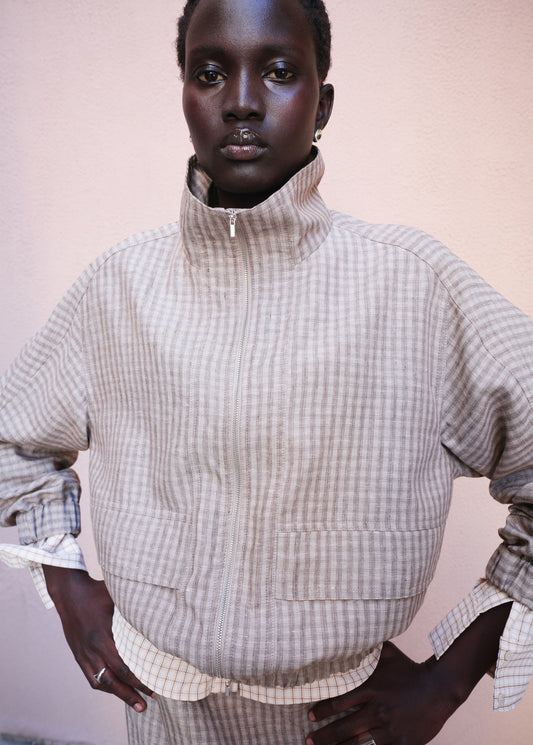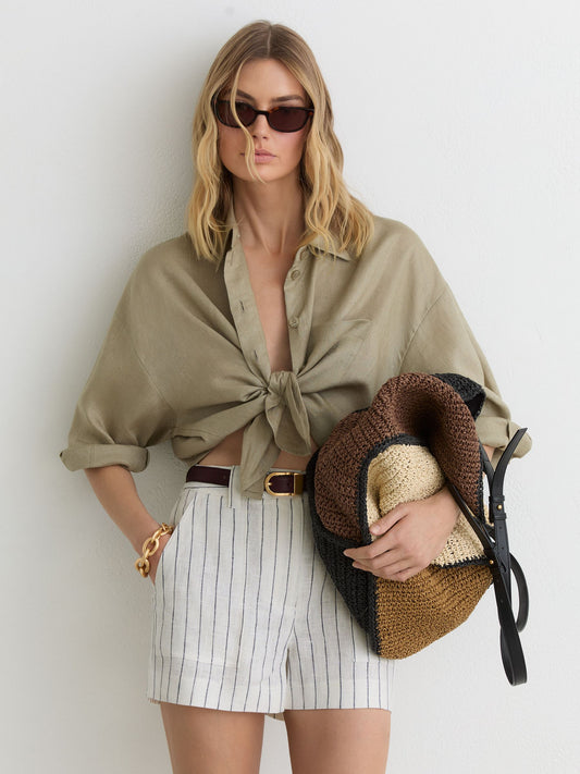 Lyocell-Linen Wide-Leg Jumpsuit in Taupe Neutral