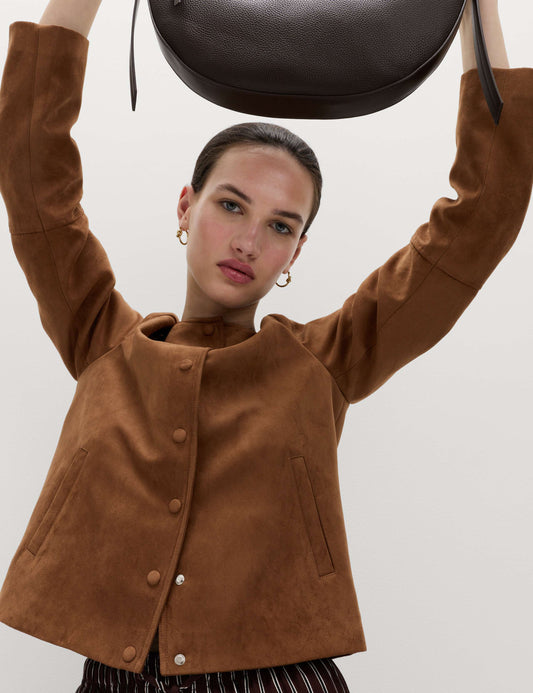 Suede Single-Breasted Relaxed-Fit Blazer in Tan Brown