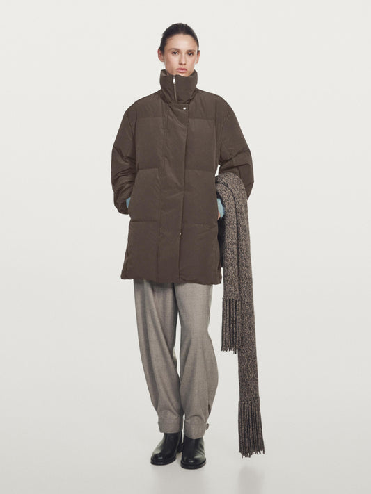 Long water-repellent puffer jacket