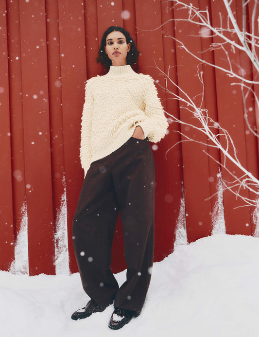 Cloud-Yarn Textured Funnel Neck Relaxed Jumper