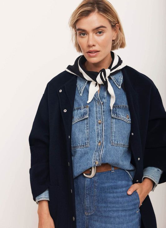 Navy Cotton Blend Triangle Knit Scarf