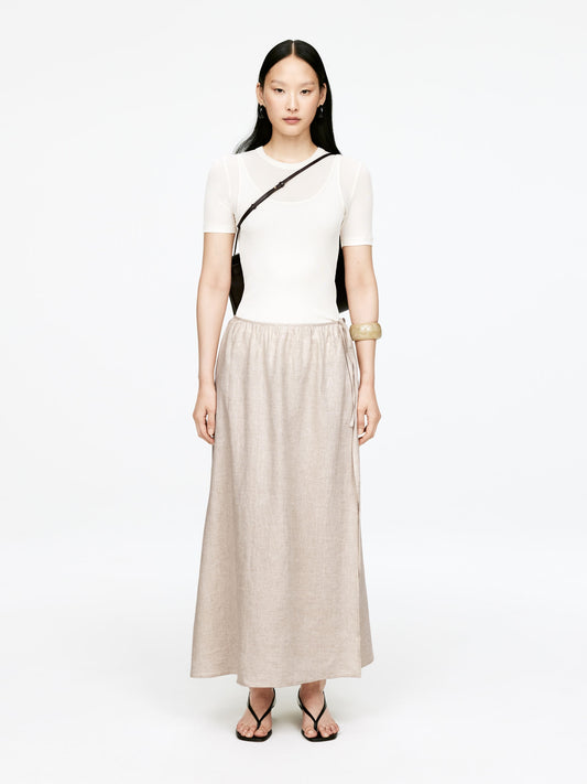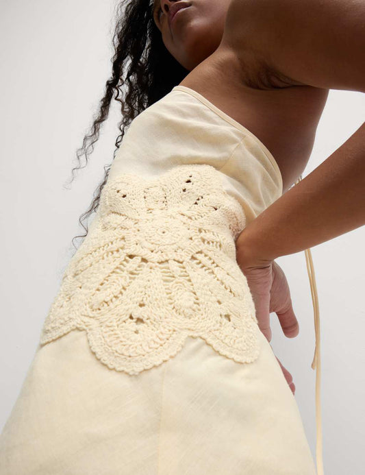 Linen Halterneck Cropped Top in Chocolate/Cream