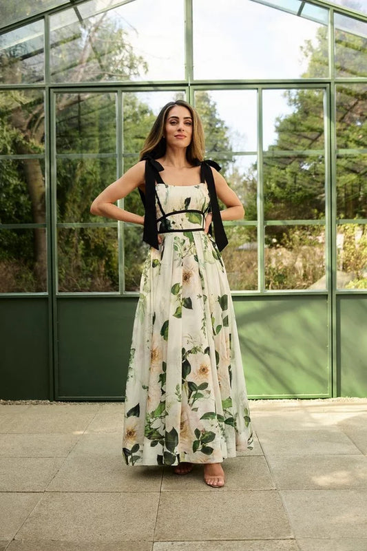 Lydia Millen Spring Floral Silk Cotton Woven Strappy Dress