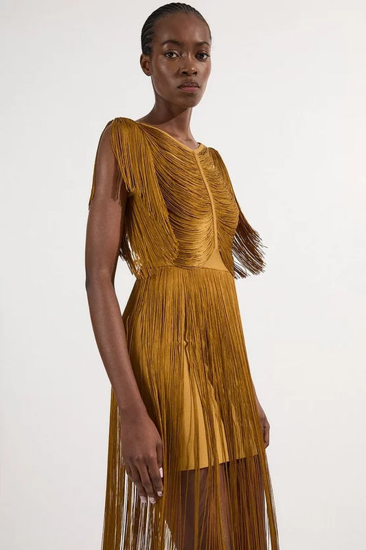 Maxi Draped Fringe Knitted Mini Dress