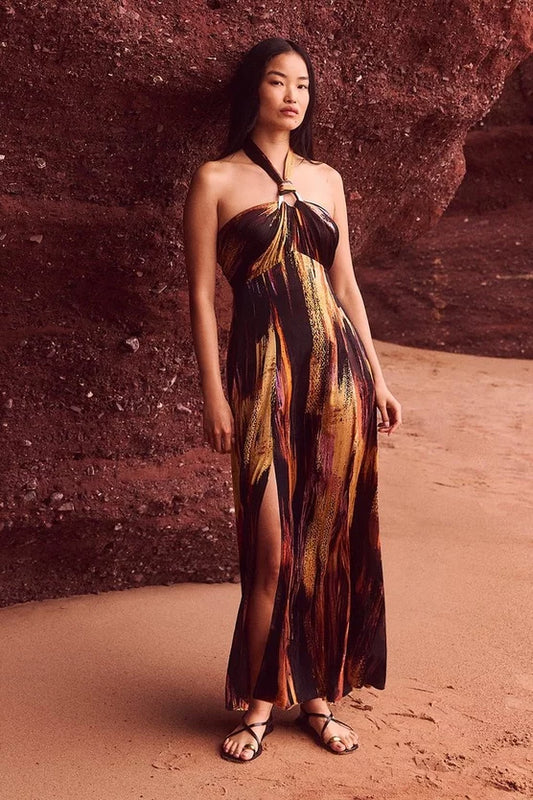 Marble Devour Halter Neck Maxi Dress