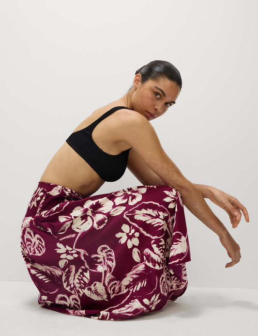 Pure Cotton Printed Shirred Midi Tiered Beach Skirt