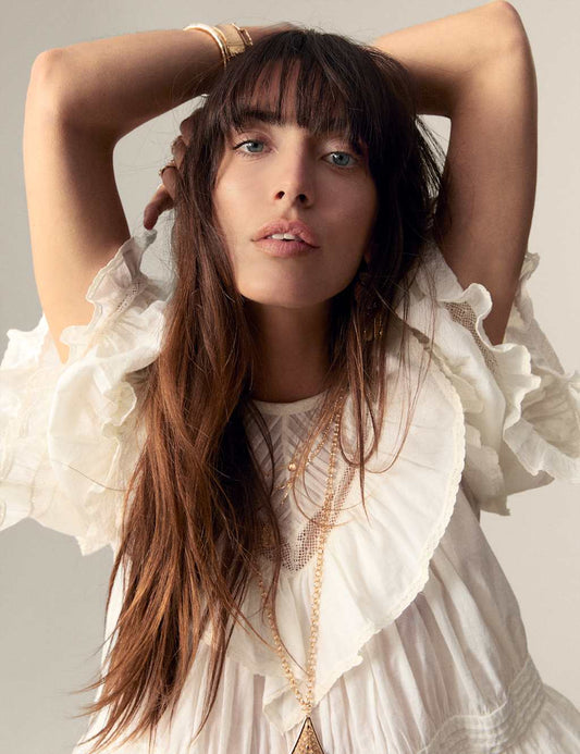 Pure Cotton Round Neck Ruffle Blouse