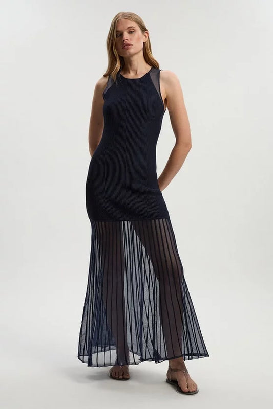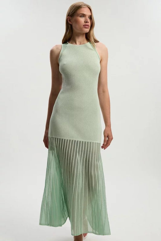 Sleeveless Viscose Blend Knitted Dress With Sparkle Sheer Details