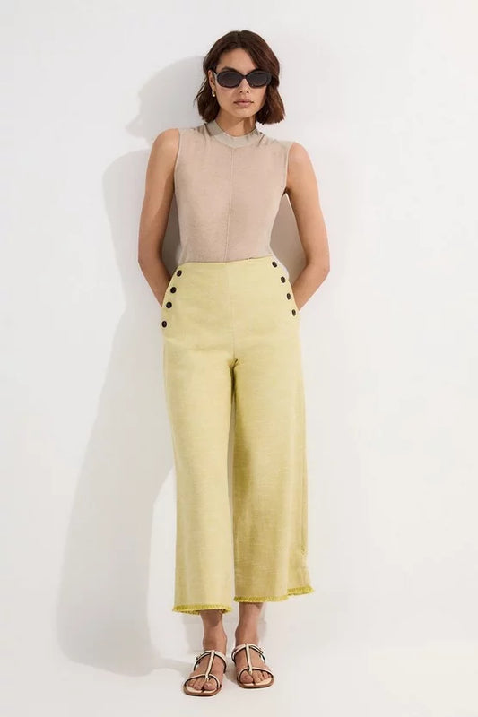 Spring Tweed Tailored Button Detail Cropped Wide Leg Trousers