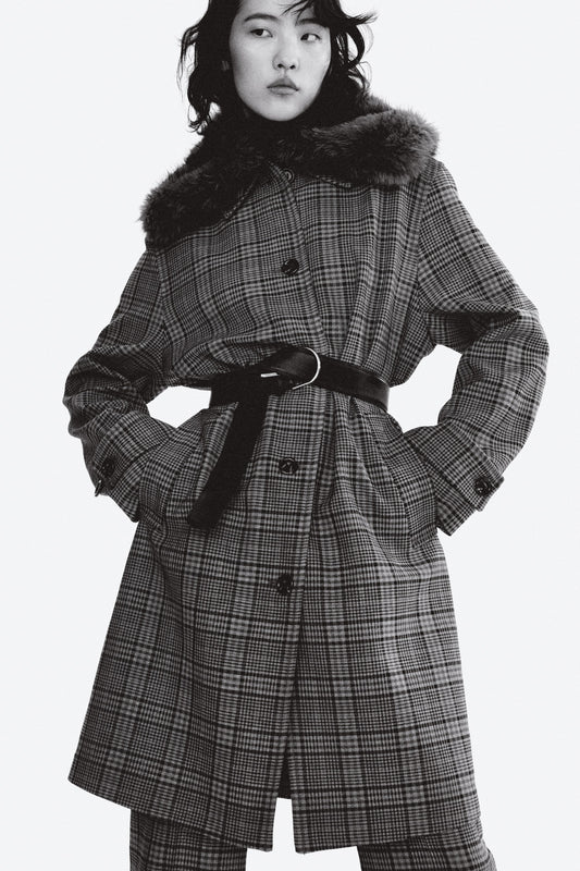 Camel Check Trim Trench Coat