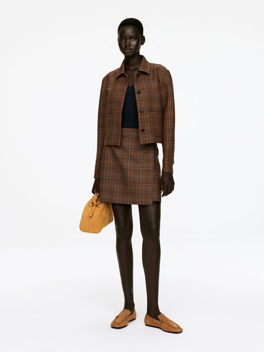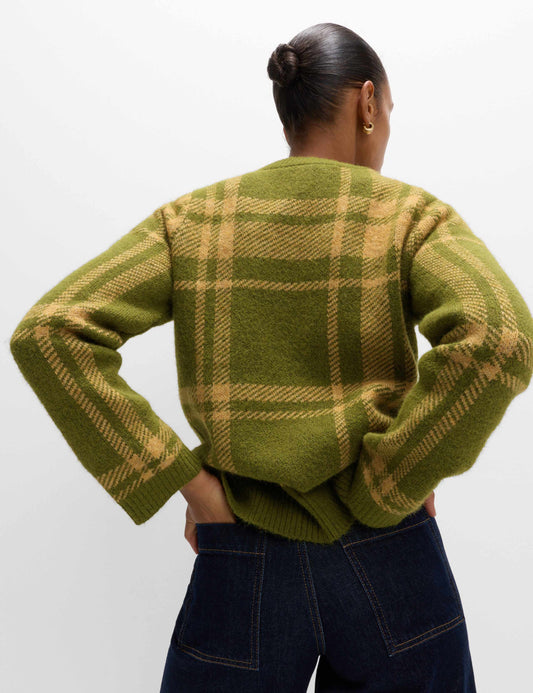 Checked Crew Neck Relaxed Fit Jumper With Wool
