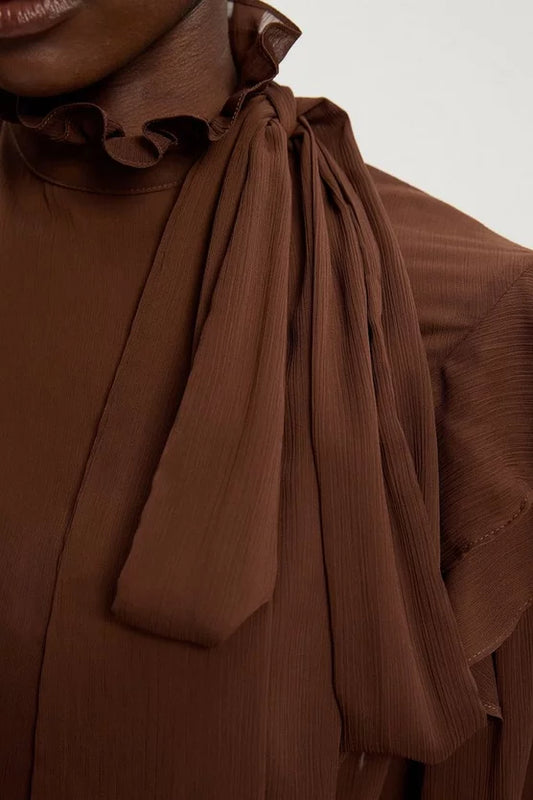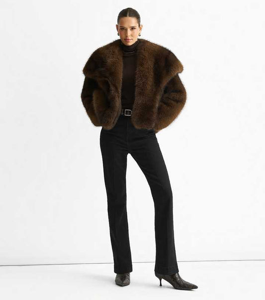 Gini London Mid Brown Oversized Lapel Faux Fur Jacket