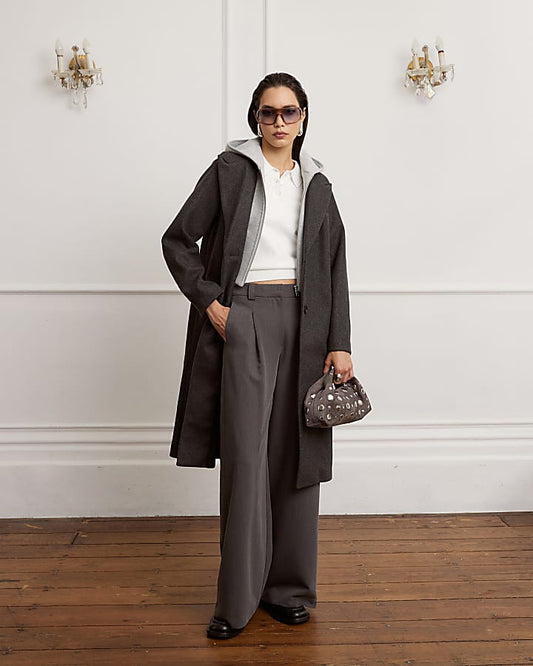 Grey Knitted Check Print Wrap Scarf Cardigan