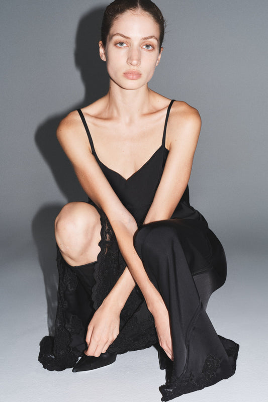 Lace With Velvet Detail Halter Neck Maxi Dress
