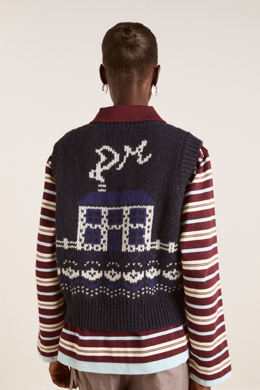Cecily Collar Lambswool Cardigan - Bunny Intarsia