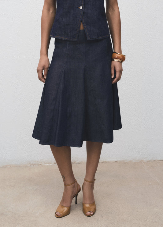Pleated denim skirt