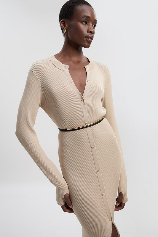 Premium Slinky Ribbed Knit Button Through Maxi Dress