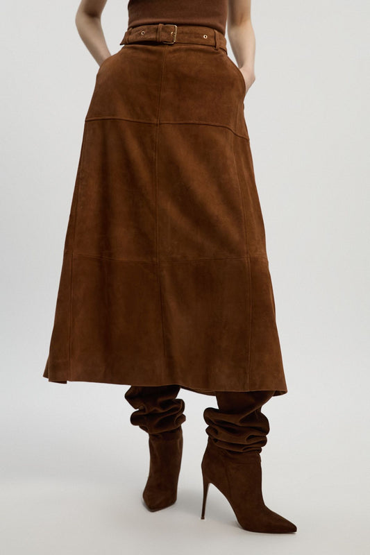 Suede Utility Belted Full Midi Skirt