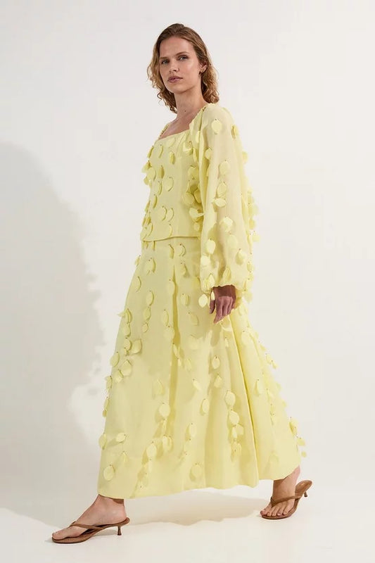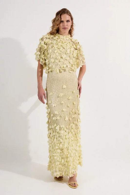 Crystal Applique Angel Sleeve Woven Maxi Dress