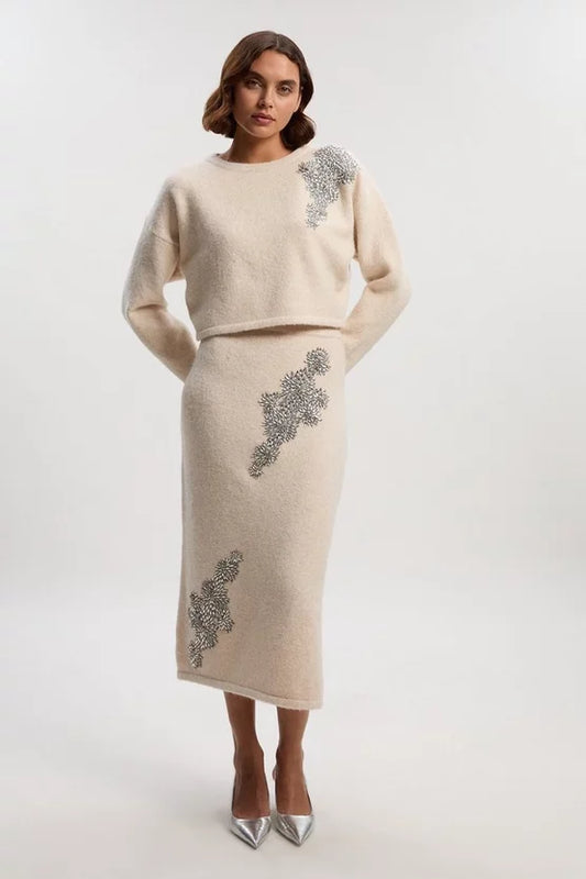 Wool Blend Embellished Cosy Crew Neck Knit Jumper