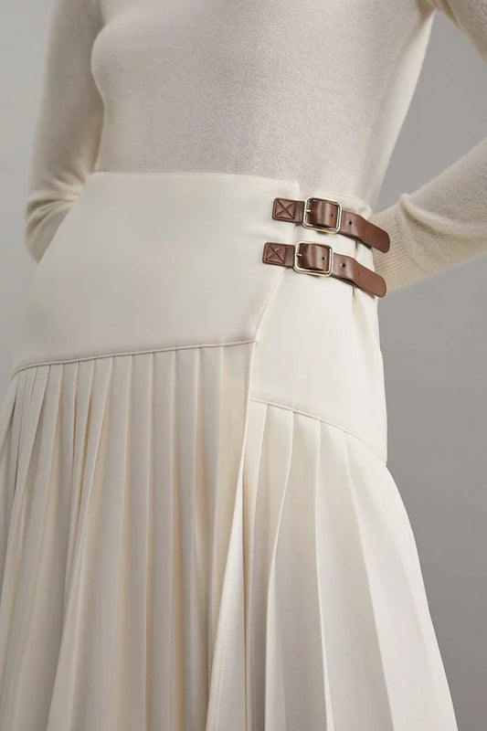 Tailored Crepe Pleated Buckle Detailed Maxi Skirt