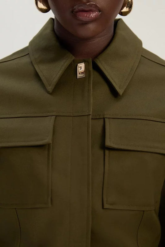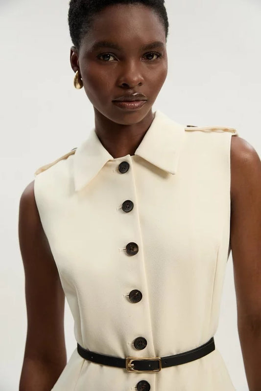 Tailored Crepe Sleeveless Button Front Tailored Shirt Midi Dress