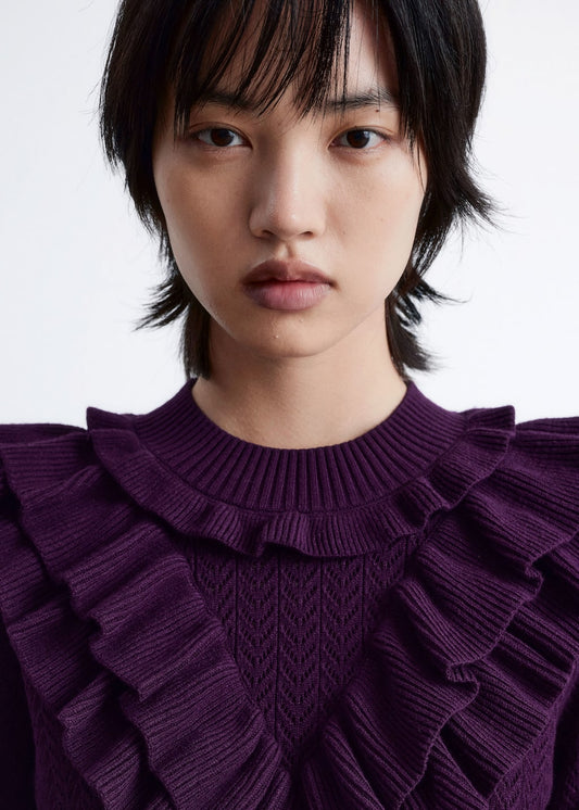 Wool Collared Cricket Jumper in Chocolate Brown/Ivory