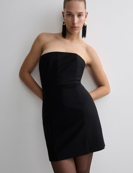 Wool Blend Strapless Mini Tailored Dress
