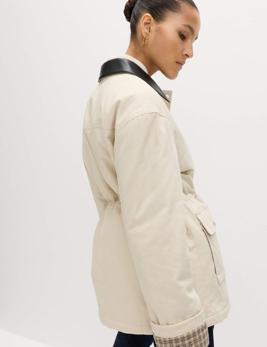 Pure Cotton Faux Leather Collared Barn Jacket