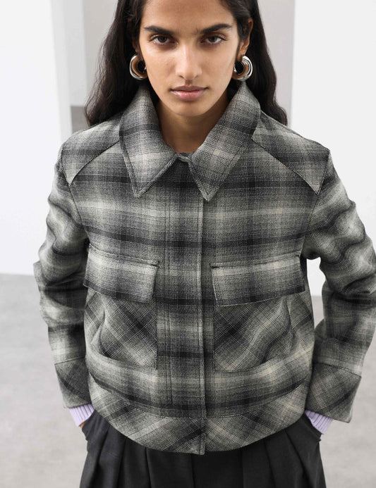 Pure Wool Checked Cropped Jacket