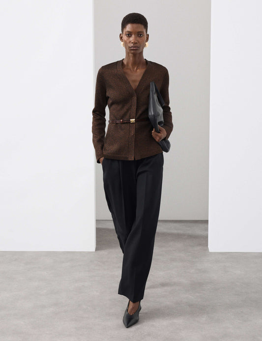 Merino Wool Blend Sparkly V-Neck Cardigan