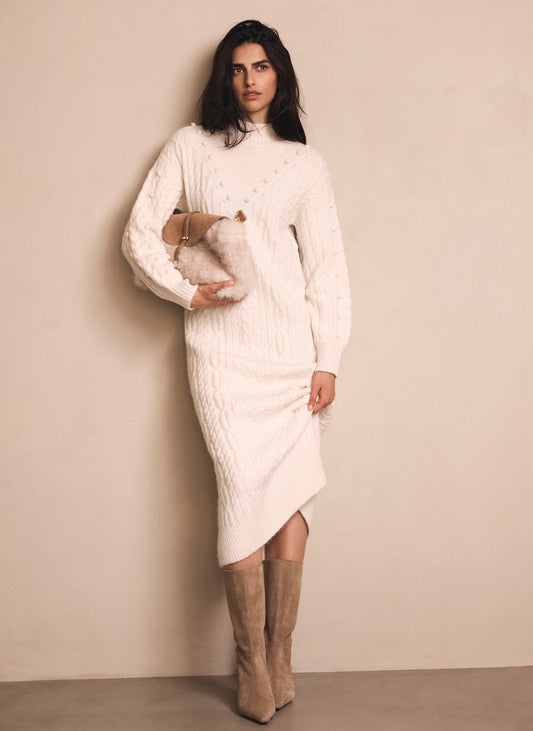 Cream Bobble Detail Knitted Midi Dress