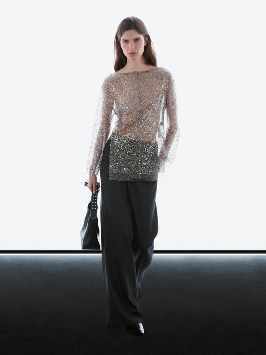 Sequinned blouse with cowl neck
