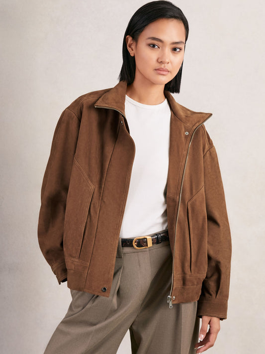 Suede Straight-Fit Midi Skirt in Tan Brown