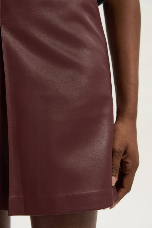 Brushed Wool Pu Mix Scarf Neck Belted Tailored Maxi Coat