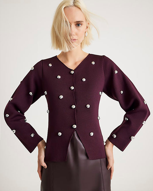 Red Knitted Studded Cardigan