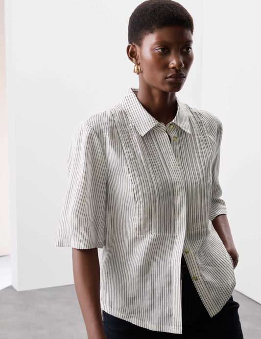 Pure Ramie Striped Pintuck Shirt