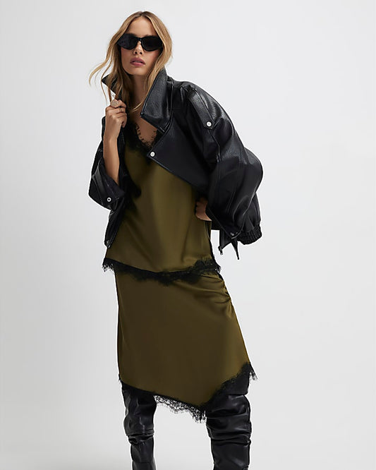 Khaki Longline Lace Trim Cami Top