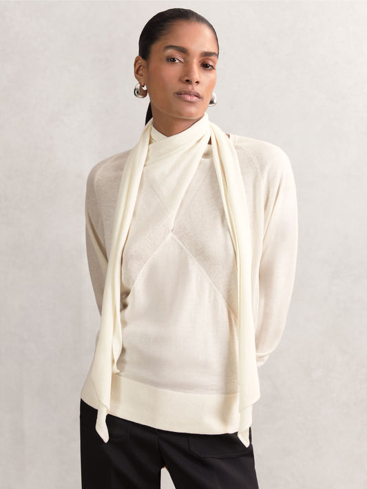 Wool Scarf-Tie Draped Jumper in Burgundy