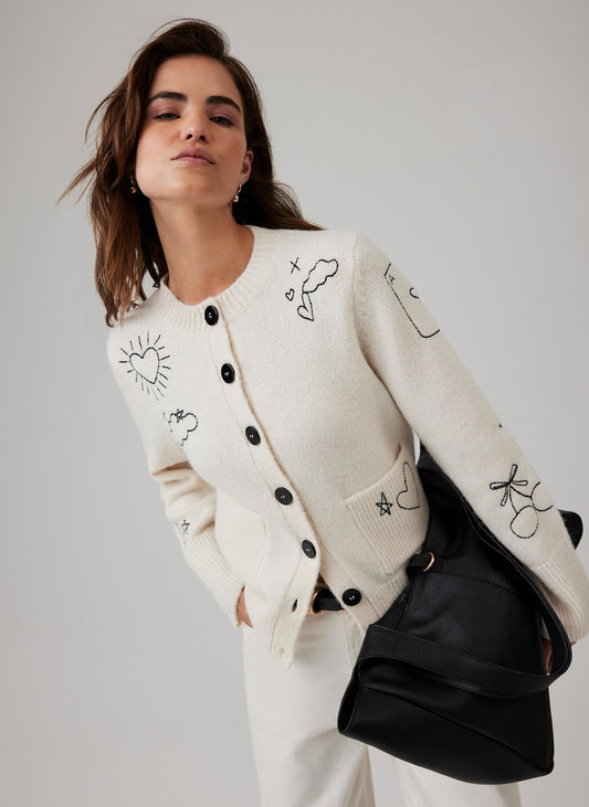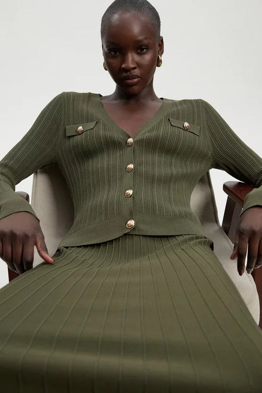 Viscose Blend Dry Handle Rib Military Trim Cardigan