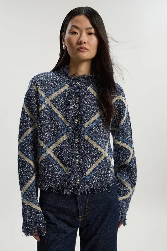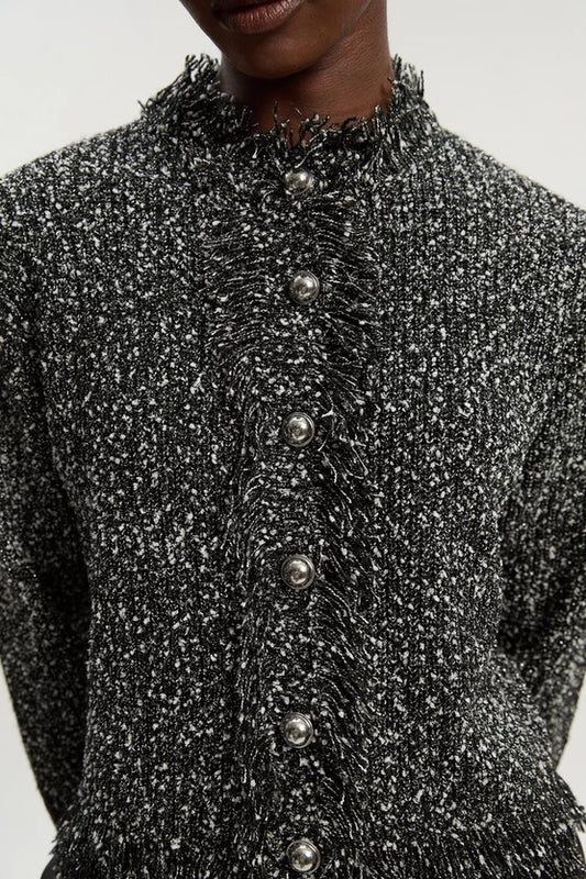 Tweed Yarn Fringe Detail Knitted Cardi