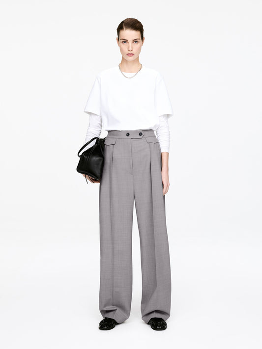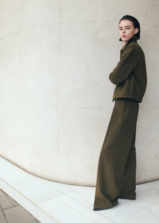 Pure Wool Pleated Wide Leg Cropped Culottes