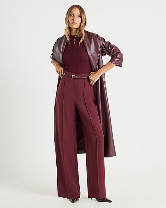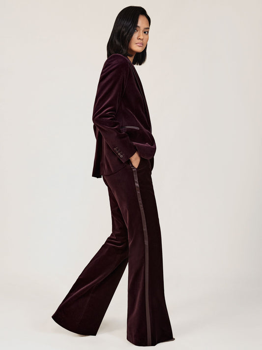 Velvet Tuxedo-Stripe Flared Trousers in Burgundy