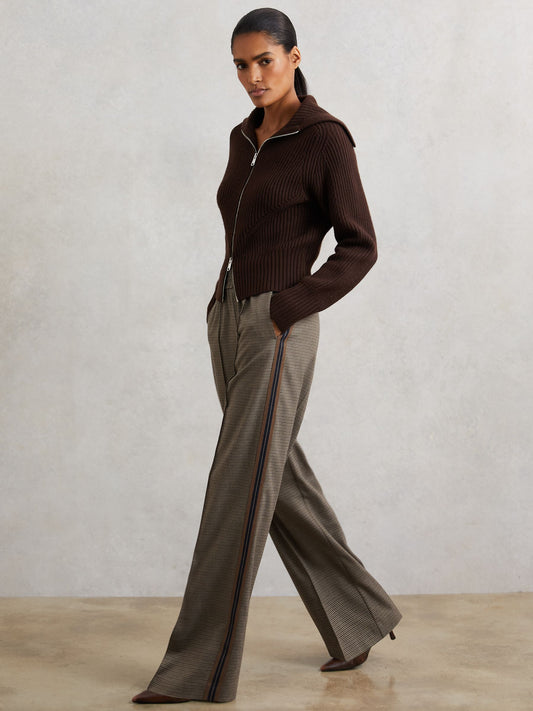 Side-Stripe Wide-Leg Check Trousers in Neutral Check