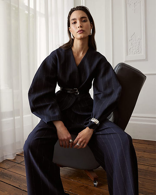 Navy Pinstripe Cocoon Sleeve Blazer