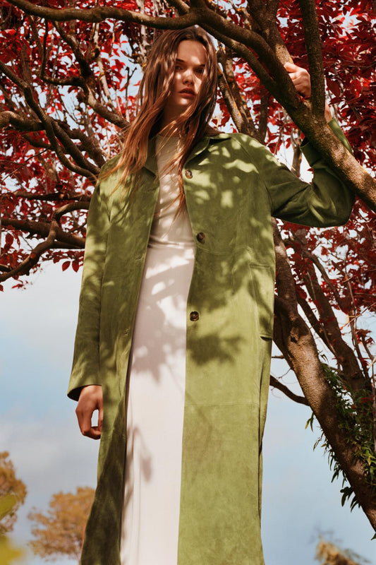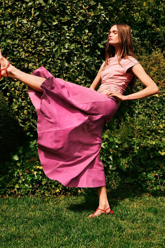 Limited Edition Asymmetric Suede Leather Midi Skirt