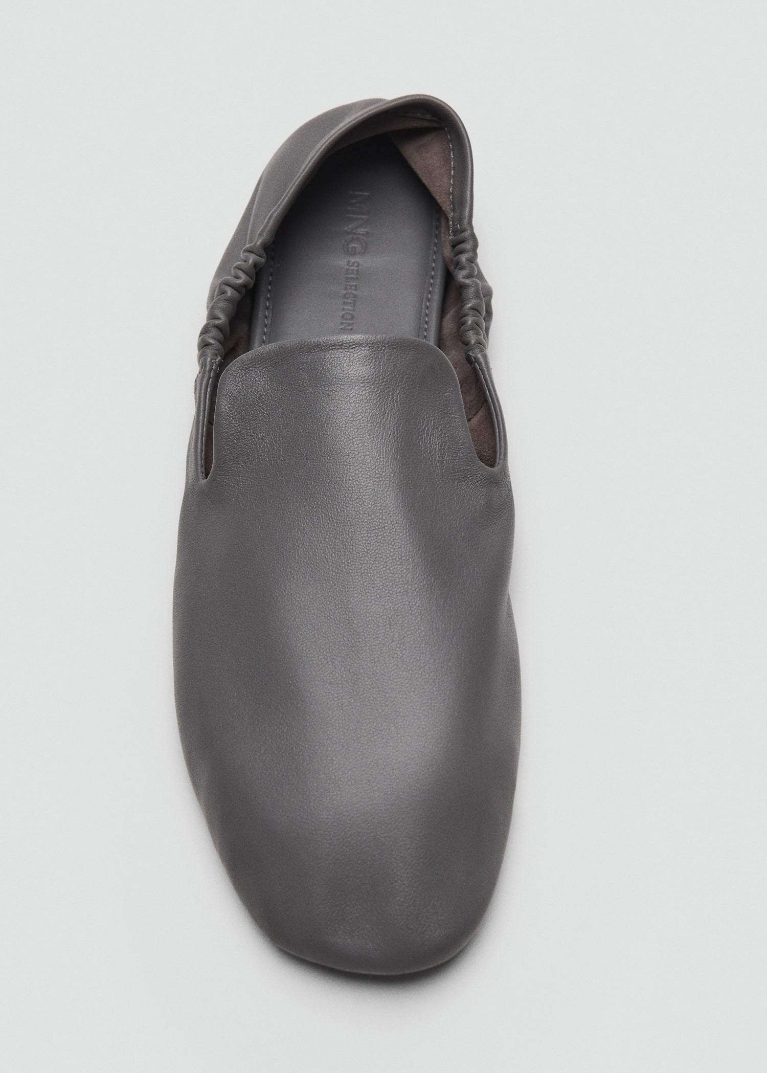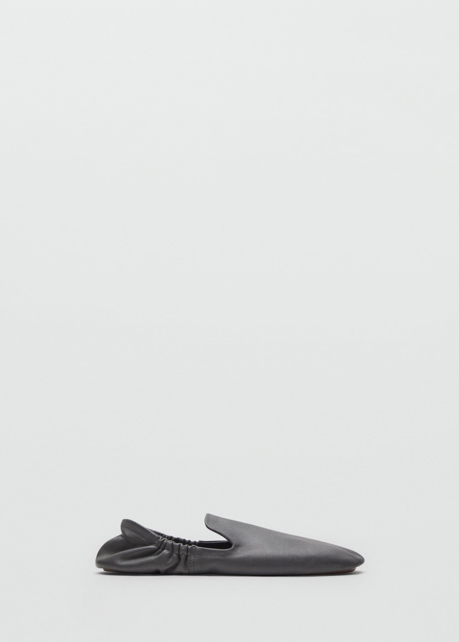 100% ovine leather. Flat. Round toe. Elastic ruching. No Fastening. Leather inner lining. Selection Collection.