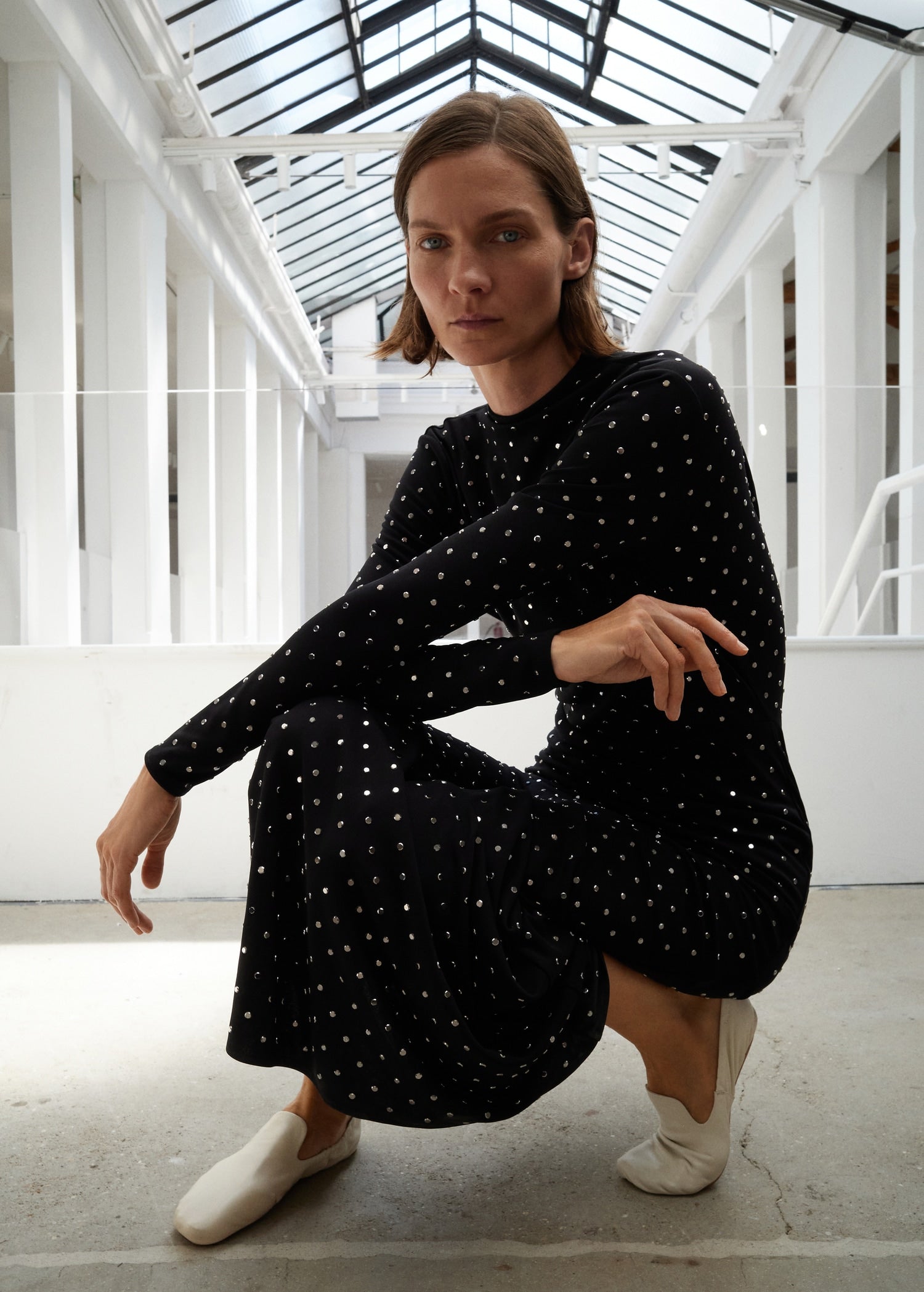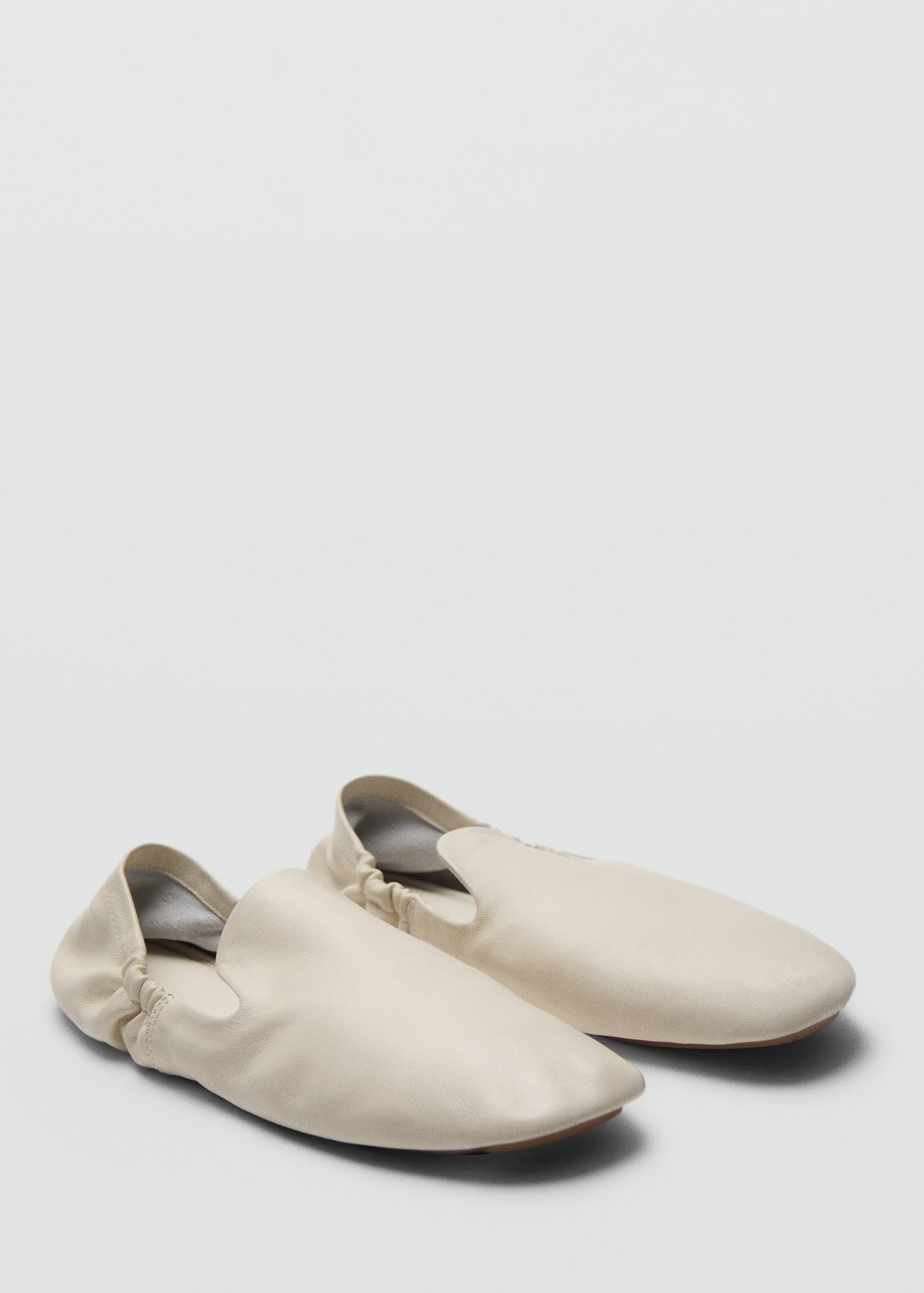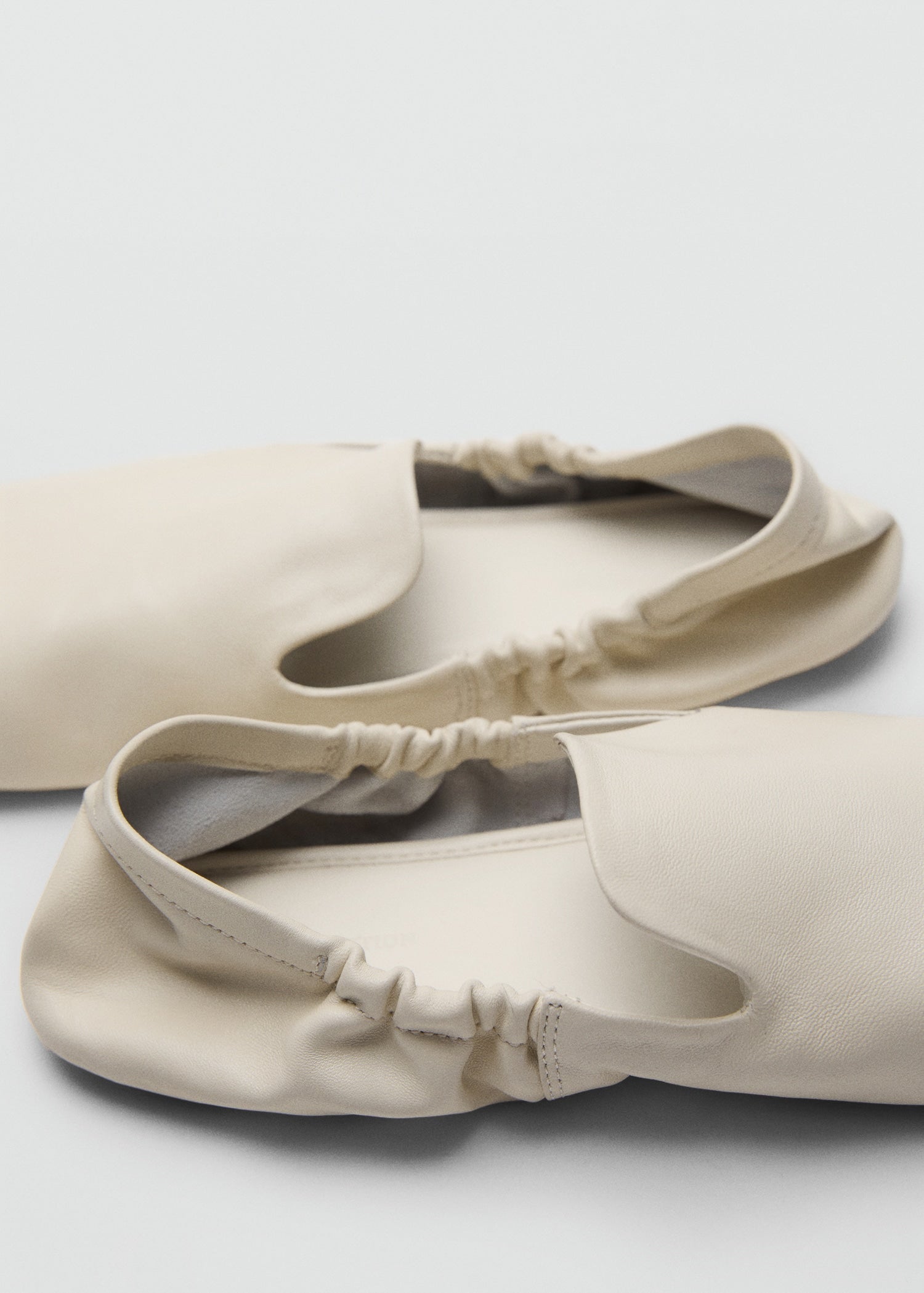 100% ovine leather. Flat. Round toe. Elastic ruching. No Fastening. Leather inner lining. Selection Collection.