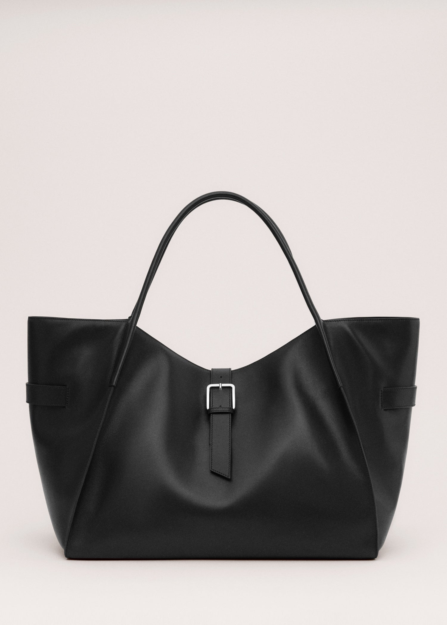 Large. 100% bovine leather. Shopper style. Two shoulder straps. Buckle closure. Interior pocket with zip closure. Inner lining. Exclusive Online. Selection Collection.